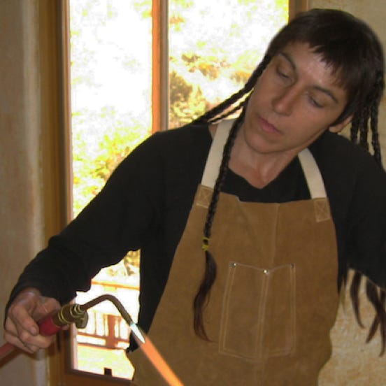 y work relates to the changing mental, spiritual, and emotional landscapes that we traverse in life. Spaces are defined to convey a particular realm of existence, quest, gesture, moment in time, or saga, reflecting the dichotomies of life: order/chaos, refinement/rawness, the primal/the intellect, tranquility/turbulence. Pieces are often cut from one flat sheet of metal, torched, and then the sculpture pulled out into a 3D work. This process produces a fluid quality, which transforms the metal’s natural rigidity. Most works represent passages through hardships or transitions. However, in some series such as the Arcs/Restrung Bows, Citadel Triad, and the String Band series, the calmness and harmony achieved after these difficult transits are expressed. Color in my work is brought about by torching or oxidizing/weathering the materials, particularly copper and steel. Thus in a very literal fashion, I also ‘paint’ with fire and water.er.